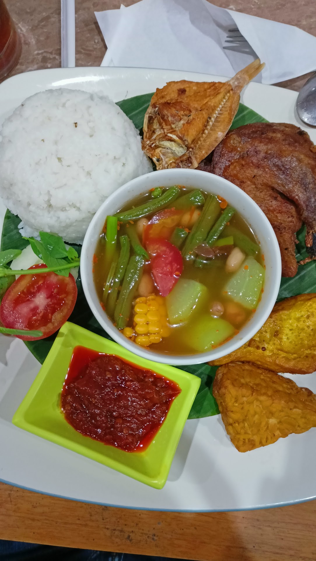 Foods are tasty especially Mie Keluntung and Ayam Cabe Kering. But I reccommended to not buy sweet ice tea. The taste was weird, honestly. Actually, the situation was good, but it was hot and there was no one standby in the room so we couldnt ask any services at all. Even we ask for a pickles, they said that they dont have it. Last one, we asked them to take away some foods, two kind of cuisines, but they wrapped into one box which was not normal, I guess? Oh, and it...