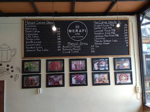 Merapi Coffee terkenal karena suasana yang tenang dan nyaman. Pengunjung dapat menikmati secangkir kopi yang lezat sambil menikmati pemandangan alam yang menakjubkan. Kafe ini menyediakan berbagai jenis kopi, baik itu kopi tradisional maupun kopi spesial dengan berbagai variasi rasa dan metode penyeduhan.