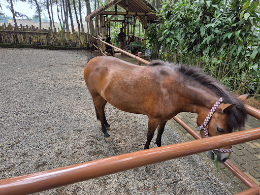 Ada 2 kandang hewan di sini, domba dan kuda poni. Meskipun lokasi restoran dan kafe dikelilingi pohon pinus, tapi hawanya tidak dingin. Cukup sekali datang...