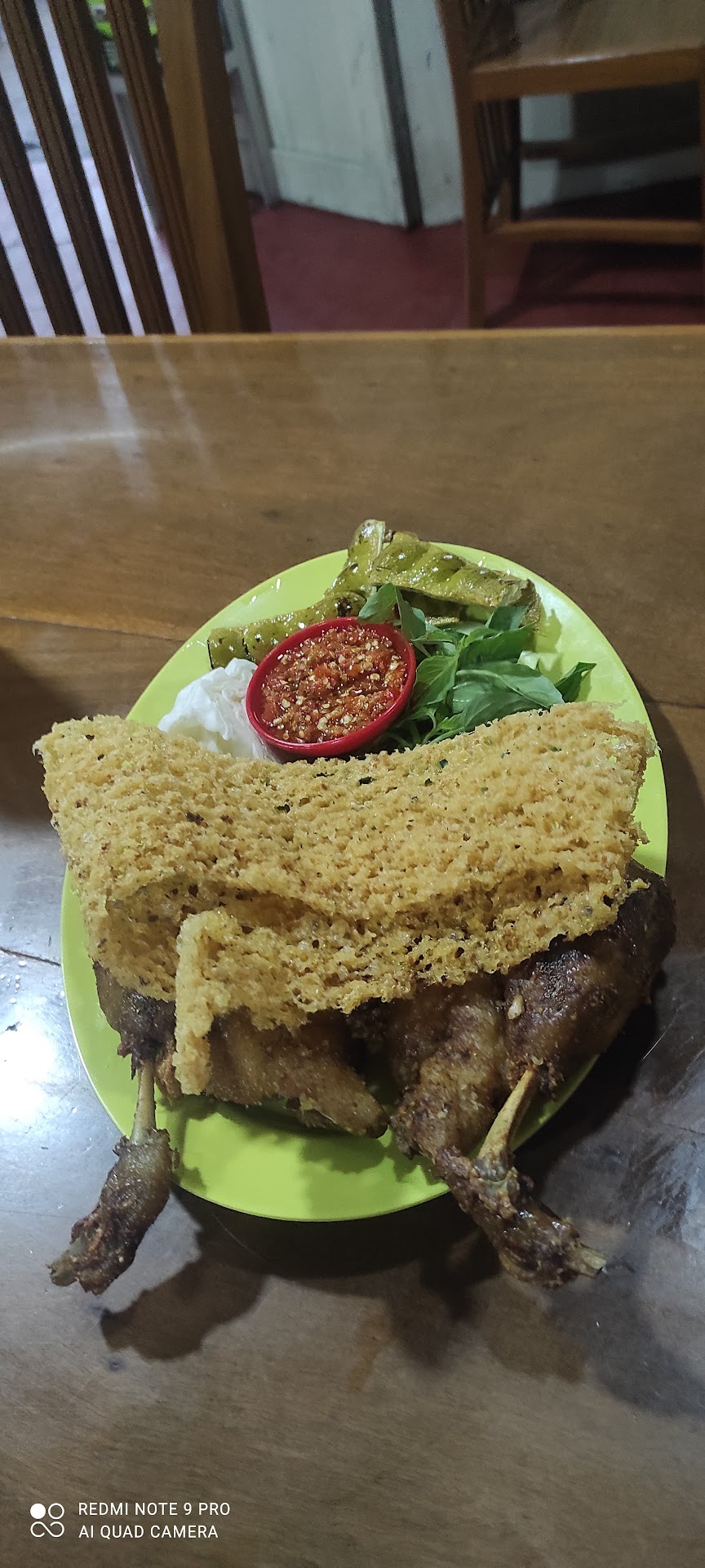 Read moreKalau ke Tawangmangu, ada menu yg oke punya selain sate kelinci, sate landak dan sop iga. Di resto ini, ada ayam dan bebek goreng, plus sambal bawang dan lalapan yg seger banget. Nah uniknya, di atas ayam/bebek goreng itu, dikasih kremesan yg ga hancur jd masih bentuk utuh. Kesannya ky ayamnya dipayungin gt hehehe..kremesnya enak bener, dijamin 1 porsi nasi kynya akan kurang, ditambah hawa dingin Tawangmangu yg mendukung..kalau masalah harga, sangat terjangkau kok..saya pesan ayam goreng, skitar 20ribu per potong. Ayamnya jg ayam kampung kok, bukan ayam potong. Meskipun ayam kampung, tp dagingnya ga alot alias keras. Wis dijamin nambah nasi dan nagih banget...