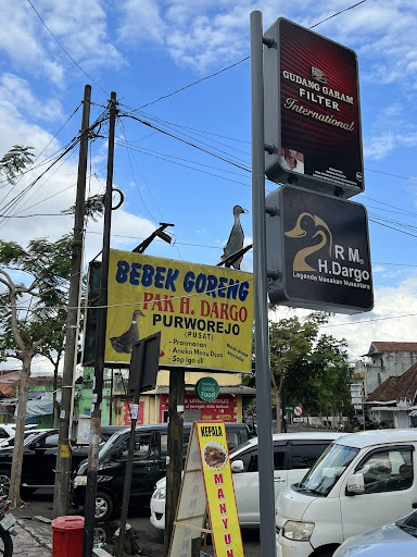 Read moreBebek Goreng Pak H. Dargo - Stasiun Lama Alamat: Jl. Mayjen Sutoyo, Kepatihan, Sebelah Timur, Kec. Purworejo, Kabupaten Purworejo, Jawa Tengah, Indonesia. Jam Buka: Setiap hari dari pukul 07.30–23.30. Nomor Telepon: +62 821-3615-3045 Rating: 4.4 Ulasan: Tempat ini memiliki spesialisasi pada masakan tradisional Jawa, terutama bebek goreng. Mereka menggunakan metode memasak tradisional dengan kayu bakar. Tempat ini juga merupakan favorit lokal. Fasilitas: Makan di tempat Pengiriman Bawa pulang Reservasi Sarapan, makan siang, makan malam, brunch Cocok untuk anak-anak dan kelompok Tempat duduk di luar ruangan Musik live: Tidak Menu untuk anak-anak Menyajikan kopi Ramah anjing: Tidak Toilet Pembayaran tunai Parkir berbayar Akses kursi roda terbatas Resto & Cafe H. Dargo Special Bebek Goreng Alamat: 72F3+GGR, Rw. 03, Pangenrejo, Kec. Purworejo, Kabupaten Purworejo, Jawa Tengah 54115, Indonesia Jam Buka: Setiap hari dari pukul 09.00–21.00. Nomor Telepon: +62 275 321341 Rating: 4.2 Ulasan: Tempat yang bagus & luas. Ada mushola, area bermain untuk anak-anak, area parkir yang luas. Makanannya juga enak dengan bebek sebagai spesialisasinya. Fasilitas: Makan di tempat Pengiriman Bawa pulang Reservasi Sarapan, makan siang, makan malam Menu untuk anak-anak Cocok untuk anak-anak dan kelompok Tempat duduk di luar ruangan Musik live: Tidak Menyajikan kopi dan dessert Ramah anjing: Tidak Toilet Parkir gratis dan berbayar Akses kursi...