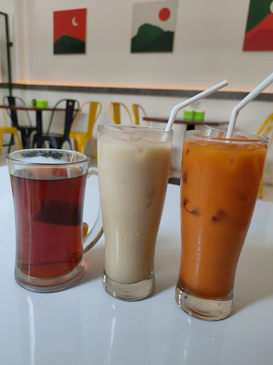 Minumane enak enak slur. Mimin nyicipi Syahi Haleeb, kui teh arab dicampur rempah, dikei susu. Ono maneh Saffron Latte (sing werno oranye) kui podo koyo Syahi Haleeb tapi ditambahi Saffron. Jos nemen.