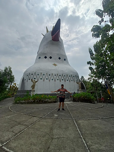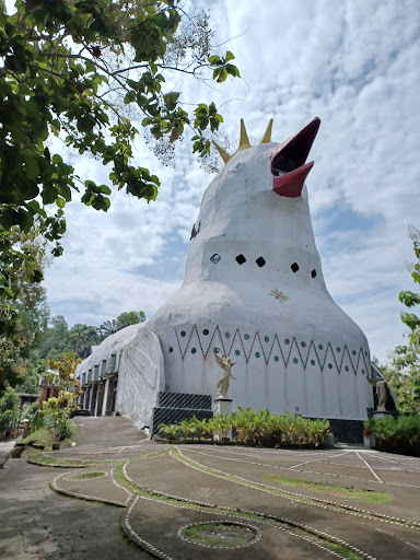 The locals call it the chicken/dove church. At the front there is an area where you can climb up the stairs to the top of the chicken/dove head for 360 degree-views of the entire surrounding area. Make sure you check out the area above the Cafe as well for the best lunch seating...