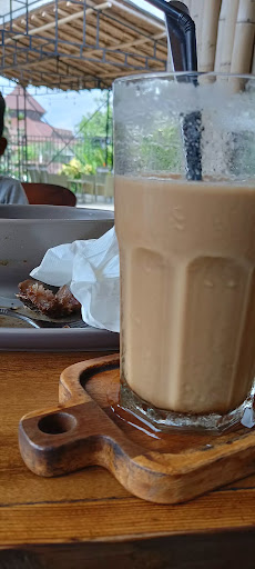 Plusnya: Makanannya enak. Standar resto. Iga bakarnya empuk, soupnya juga terasa kaldunya. Tapi kalau dibilang enak banget ya enggak, enak yang standar seperti resto yang lain. Kopi arennya terlalu manis, udah pesen double shot tapi rasa kopinya kurang berasa. suasananya healing banget. Segar. Teduh. Nyaman. Ada kolam ikan, interior dari bambu. good view. Isntagramable banget buat diposting. Indah. Suasananya enak banget banget. karena tiang sampe atap bangunan terbuat dari bambu, jadi terasa adem. Nggak panas walaupun kesana siang-siang, karena teduh banyak tanaman plus model bangunannya beratap tinggi. Kursi meja terbuat dari kayu, ada beberapa yang model jadul ala kursi rotan jaman dulu. ada mini playground buat anak pelayanannya jempol banyaaak. Mbak waitersnya ramah, sopan, dikasih welcoming snack dan lilin terapi kalo ga salah tadi. bersih banget. menyediakan qris
