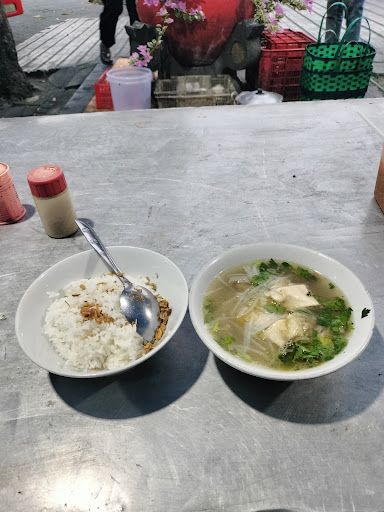 this place sells chicken soup in a street food style hawker. the soup is clear with diced chicken inside, with no vegetable other than sliced celery. you can choose whether the rice is mixed into the soup or separated. you can also add other chicken meat like wings or thighs.