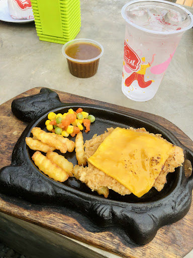 (+) Steaknya enak semua, crispy nya dapet, dagingnya cukup tebal, vegetable mix nya fresh dan kematangannya pas. Kuah steaknya cukup banyak. Nasinya pulen. Es tehnya ga pahit, air esnya enak segeeerrr (karena setiap tempat, rasa airnya beda-beda). Syukaaaa daridulu rasanya ga berubah ๐ซถ๐ป Konsep tempatnya industrial. Tempatnya bersih, nyaman, banyak pilihan tempat duduk (outdoor semua). Ada toilet. Ada mushola lengkap dengan mukena, sarung, sajadah, penunjuk arah kiblat, kipas angin besar dengan 4 Stella jeruk menggantung di kipas anginnya. Menyala Stellakuuu ๐ญ๐คฃ Pelayanan cepat dan ramah. Saat menyajikan ke pembeli, masnya ngejelasin pesanan kita dan menanyakan apakah semua pesanan sudah lengkap disajikan/belum ๐ Pembayaran bisa cash dan cashless.