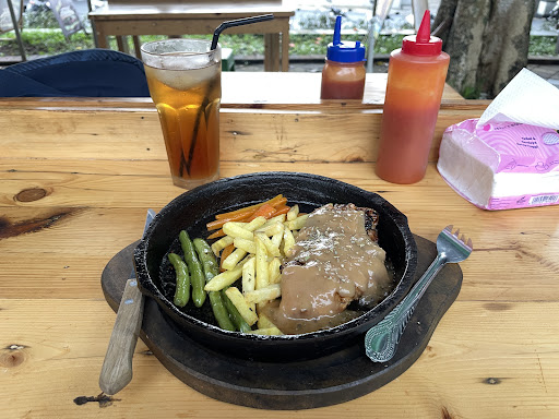 Read moreJd salah satu steak enak di tmg sih ini. Lokasinya strategis ada di tengah kota. Meskipun tempatnya tendaan ala kadarnya tp untuk rasa asli mnrtku ga kaleng-kaleng, ini enak. Kesini baru nyobain yg steak ayam saus mushroom dan steak sapi saos bbq (gambar terlampir). Dagingnya juicy bgttt baik yg ayam maupun sapi (tp yg sapi lebih mantaapp, juicy, lumer dan ga alot, teksturnya pas), seasoningnya jg pas, saus mushroomnya mnrtku rekomended. Pelayanannya jg oke punya, bahkan dimintai feedback soal makanannya, salut bgt mau dengerin saran konsumen 👍🏻 Oiyaaa klo kesini harap sabar yaaa (tidak cocok buat yg buru buru), karena emang proses masaknya cukup memakan waktu, tp wajar sih hasil masakannya soalnya ga yg ngasal masak kaya steak-steak pada umumnya yg ngarah murah/penyajian cepet. Untuk harga mnrtku sesuai sama rasa,...