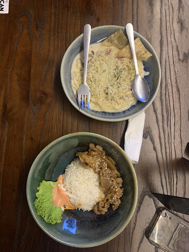 Read moreTempat parkir sempit, areanya tidak terlalu luas cuma ada lantai 2nya outdoor dan bisa dipakai karoke, juga ada Playground dan vibesnya lumayan oke. Itu plusnya Minusnya, menurut saya makanannya B aja, rating 6/10. Dengan harga segitu, dg piring yang cantik, sayang banget komposisi makanan dan rasanya kurang menunjang. Pasta creamy cheesee lumayan enak, beef spicy pastany sorry to say mengecewakan. Spagetinya patah2 remuk, toping nya daging balado terlalu pedes, porsi sedikit ga cocok sama piring yg lumayan besar, presentasinya sepi. Beef teriyakinya juga B aja. Bukan beef yg disajikan kebanyakan lemak/jando, bumbu/sausnya kering, nasinya ga pulen. Sweet tortila Nutella nya juga under expectation. Lebih ke crepes basah bukan tortila menurut saya. Nutellanya juga pelit, banyak stroberi diiris tipis2 dan pisang tipis2 nya saja Mungkin dari segi rasa dan komposisi bisa diperbaiki lagi. Sayang banget dengan harga segitu dan tempat yg nyaman rusak gara2 rasa...
