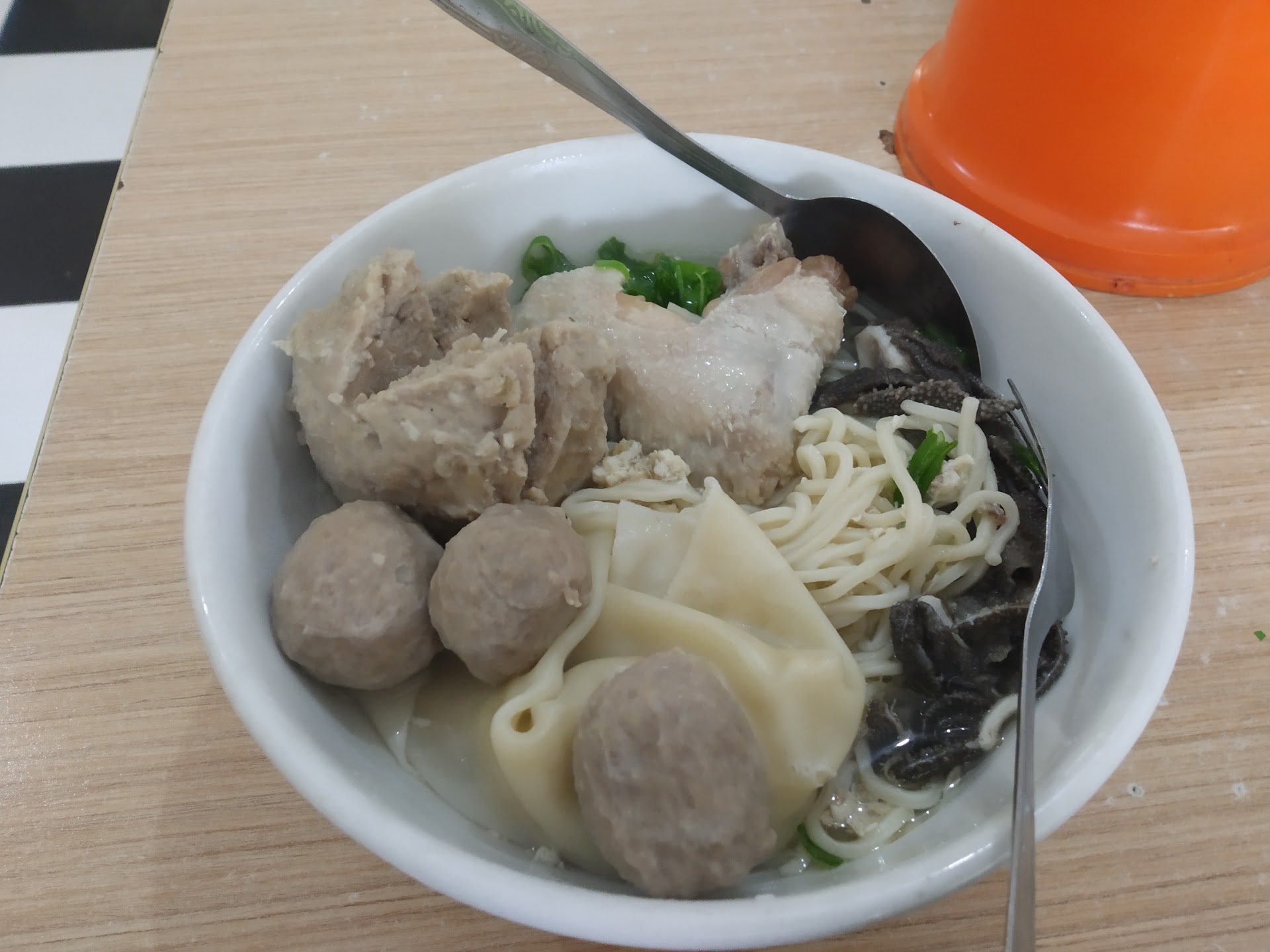 Read moreDisini tidak hanya menjual mie bakso. Aku selalu pesan mie yamin manis, menurut ku enak dan murah karena dengan harga segitu kita dapat mie yang cukup banyak. Tapi Sayang sekali,baso besarnya tidak ada isiannya. Tapi lumayan lah rasa baksonya, :(