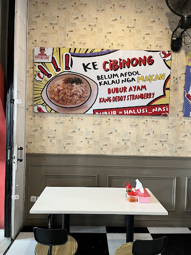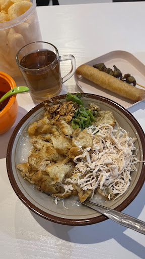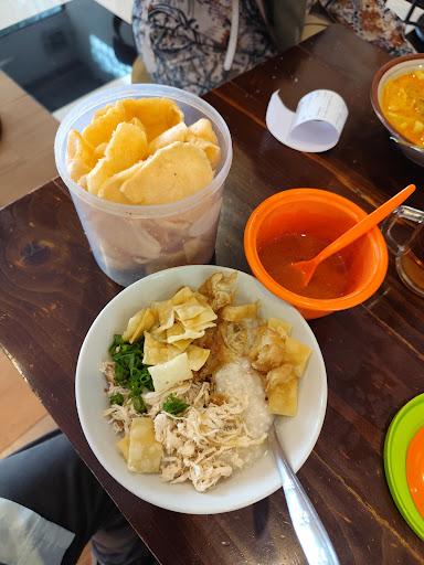 Read moreTempat agak sulit ketemunya kalau kelewatan gang masuknya. Sebelum lampu merah McD belok kiri masuk perumahan, langsung belok kanan di pos sekuritinya. Jalan terus lebih kurang 50m disebelah kiri. Parkiran juga sulit buat mobil, buat motor didepan toko cukup banyak muatnya. Untuk menu, ada bubur, nasi tutug oncom dan snack2 nya. Untuk minuman juga beragam jenisnya. Untuk rasa ya ok lah, cukup enak. Namun bubur sedikit encer untuk ukuran saya, disediakan kerupuk di toples2 sedang setiap makan bubur disini. Untuk porsi standart porsi bubur 12rb an di gerobakan. Tidak terlalu banyak dan tidak sedikit juga, pas...