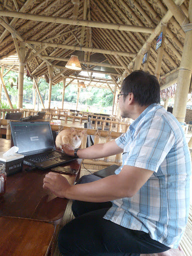 Located in most prominent area in Cibinong, Kab Bogor, it managed maintaining its nature with greenery, lake side, fresh air, and it's on top of the fish pond!!! Not to mention, a real animal friendly spot. They appreciate the harmonious living among human, animal in a shared environment. The fat cat sitting next to and entertaining us is the proof!