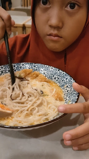 Read moreRamennya enak, murah. Yg kuah shoyunya bukan yg bener² kecap asin aja tp creamy jd enak. Yg rasa kari enak tapi ya enak aja, sedikit hambar. Gak pesen yg kuah mala, jd belum tau, next nanti bakal pesen. ✅️ Topping beef slicenya banyak buat ukuran harga seporsi 30rb. ‼️ Chiken katsunya terlalu tebel kulitnya + dingin jadi berasa keras. ✅️‼️ Gyozanya enak tapi dingin, rasanya lebih ke siomay dimsum bukan kayak gyoza yg biasa dimakan di resto² jepang, kulit terlalu tebel, klo biasa penyajiannya gausa dipakein chili oil/cabe bubuk lsg, biar customer sndr yg atur (kebetulan saya ajak anak saya yg umur 1,5th, krn gatau klo penyajian gyozanya dipakein chili oil/cabe bubuk lsg, jd gak bisa kemakan sama anak saya) ‼️ Gohiyongnya gak ada yg spesial, diblg enak ya engga diblg gak enak ya enak, dingin dan agak sedikit asam🙏🏻 ❗️Greentea, gak expect klo bakal disajikan manis, dan lebih dominan manis. Sorry to say, rasanya sedikit b4si, mohon dicek berkala. ❗️ Lemontea, ya cuma rasa teh dan asam, blm ada yg spesial🙏🏻 Mungkin nextnya mending minum air mineral aja👍🏻 ‼️ Baby chairnya kotor sekali banyak remehan kotoran (dari sendal sepertinya). ❗️ Suasana tdk ada yg spesial, lebih ke berisik mgkn krn tempat kecil, jadi orang ngomong kedengeran bgt. ‼️‼️‼️‼️‼️Please banget kasih tau klo crewnya dan tukang parkir atau siapapun, ngerokok suruh jauhan dari restonya, krn pas saya dateng lagi pada ngerokok persis di depan pintu masuk, jadi pas lagi pesen dikasir jadi terganggu krn asap rokok yg menyengat dan bikin sesak. Sekian dan terimakasih.