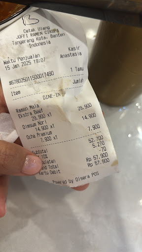 Read moreLess than satisfactory, The cashier is not very friendly in his service. Ask to be paid using Qris if paying in cash must be exact. This is a business that should provide small change. Why is there mineral water on the menu but none of the ones sold are cold. If you want to use ice cubes, just one. It seems like the Chiken Katsu is not cooked enough and the ramen soup is not hot enough.