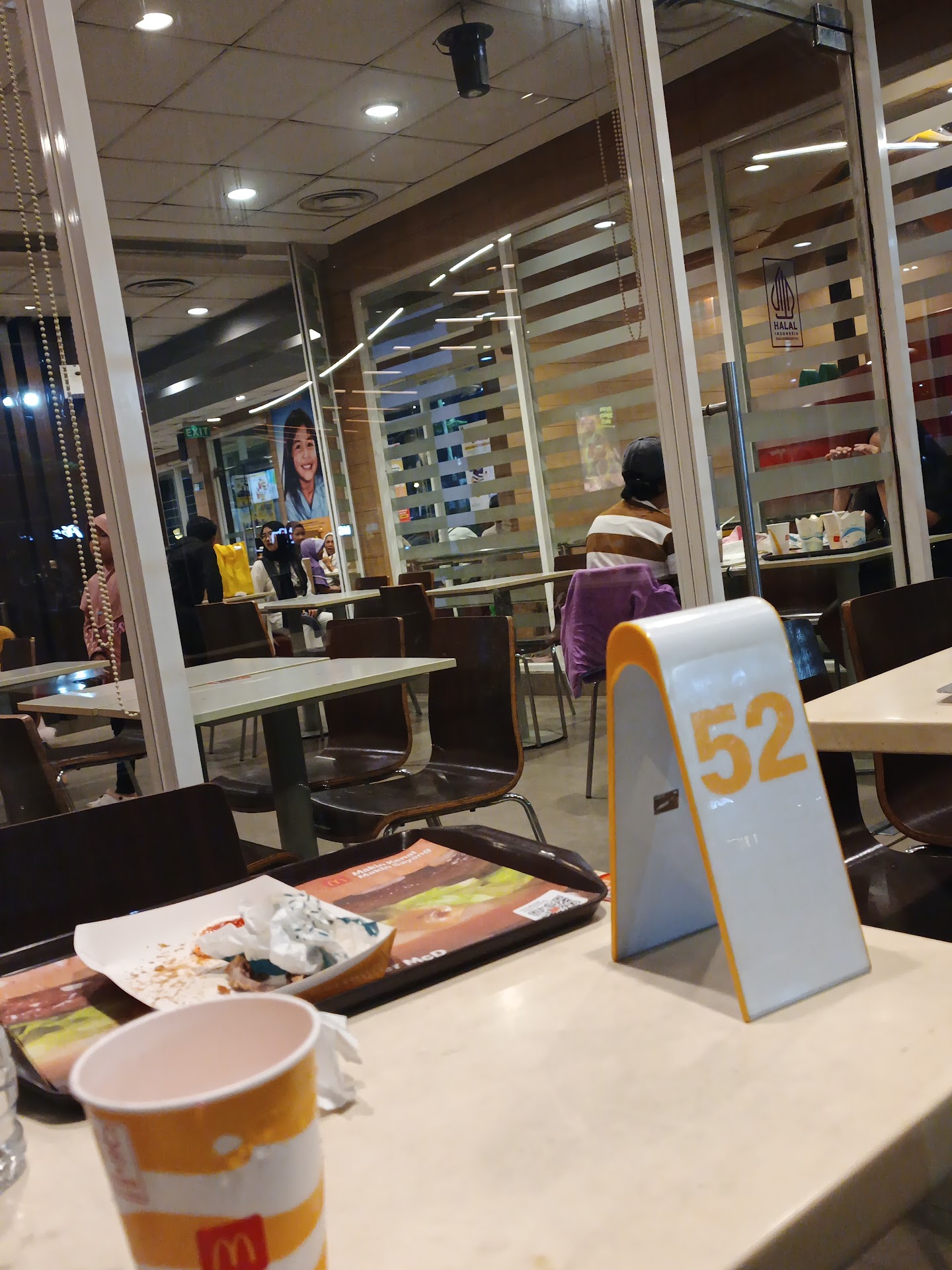 Β Β Β Read moreAwal mau masuk tiba2 satpamnya bilang kalo gabisa makan disana. Bisanya take away. Padahal gua liat smoking areanya kosong gaada orang. Trus gua bilang "lah itu kosong disana" trus satpamnya speak2 sama mba2 didlm trus akhirnya dibolehin sama mba yg didlm. Trus cwo gua bilang ini didlm juga ksoong pak ,ke satpamnya. Trus satpamnua jawab dengan nada yg ngeselin bgt bilang "ya kalo mau sendiri2 mah silahkan" okeee gua gamau ribut. Yaudah gua pesen, trus bayar. Pesenan di struk jam 17.48 sampe 18.30 ga dateng2 padahal orang yg setelah gua udh pada dateng pesenannya. Pas jam 18.48 pas bgt sejam gua langsung nyamperin mba2 yg abis nganter makanan, trus mba nya kaget pas aku bilang udh sejam ga datang2 . Dia langsung minta struk dan lanjut ke kasir. Gua lanjut duduk dimeja sambil nunggu makanan gua dateng. Eh masih lama juga, gua kesel bgt akhirnya gua samperin ke kasir, pas gua sampe kekasir ternyata mbanya udh bawa pesenan gua. Trus gua jalan ke meja langsung. Dan jawaban mbanya yg bikin tambah kesel. Masa katanya struknya kebuang. Struk yg dikasir kebuang. Aseli gatau lagi gua musti bilang apa ke mcd yg disini. Udh satpamnya mendiskriminasi bgt, mentang2 gua dandannya biasa2 aja karena balik kerja dikira gua ga mampu apa makan disini. Gua sering bgt ke mcd, cuman ga kayak gini, baru ini nemu mcd kayak gini. Gua ke mcd ga cuman nongkrong beli cola sama fries doang, gua kesana makan dan pesenannya lebih dri 100rb karena gua emg suka sama mcd. Saran aja, cari satpam jangan yg liat org dari tampang, gedeh bgt aseli. Tuh satpam gatau kalo org yg dinilai kaya ternyata didlm cuma. Pesen cola 2 sama fries 1 padahal bertiga trus nongkrong 2jam lebih, padahal banyak yg gabisa masuk karena penuh pas buka puasa. Mending gausah ada...