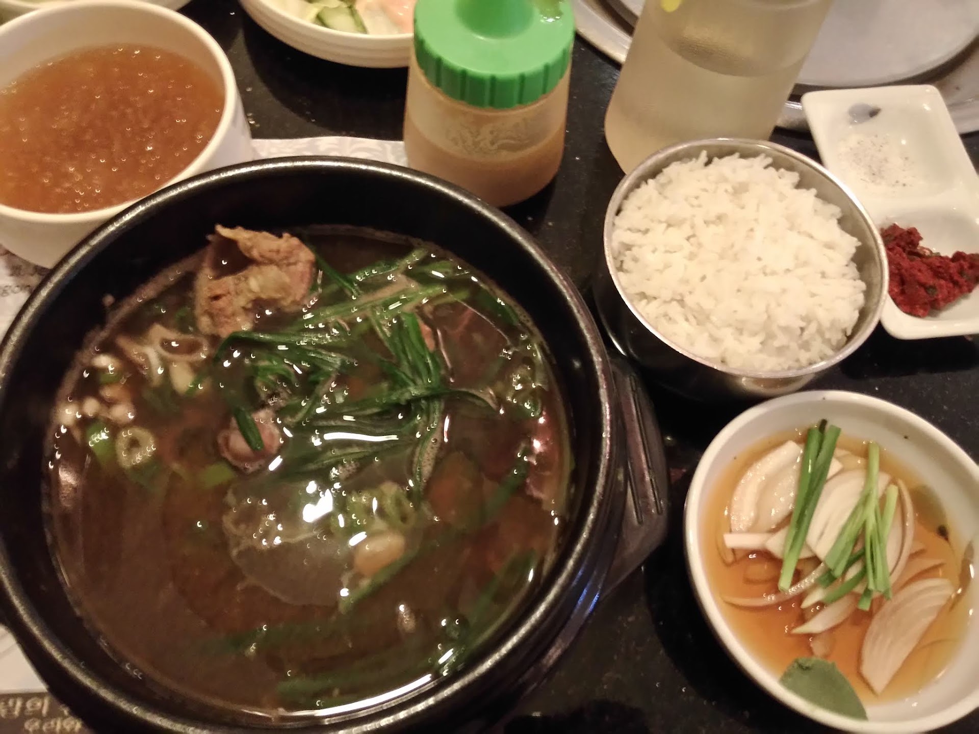 The food is halal here, so no need to worry for Muslim to go here. It serves a large variety of Korean dishes like bibimbap, bokkeumbap, samgyetang, galbitang, etc. They also serves appetizer or more accurately side dishes (Bapsang), ranged from kimchi, seasoned spinach, turnip, ppajeon, vegetable salad, etc). You'll also get dessert with a choice of ice cream or coffee.