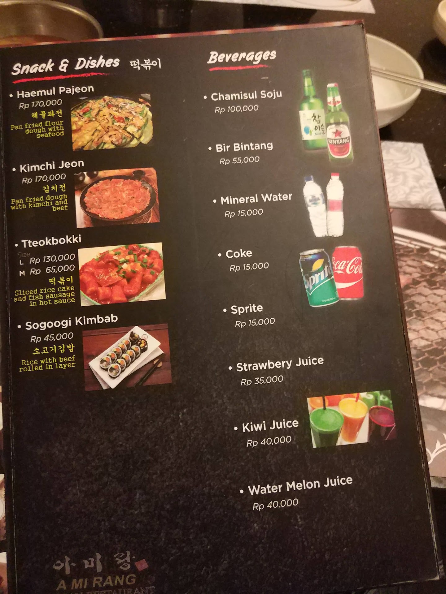 Sebagai gambaran saya makan berdua (tidak termasuk minum) memesan tteokpoki dan dolsot bibimbap harus membayar total 170k. Kemuadian saya dan teman kantor ber15 membayar total sekitar 2000k tapi dengan menu yang lengkap (nasi, kimbap, tteokpoki, yangyeom chicken, sup jamur, bulgogi, japchae, ujingo bokkeum). Kenyang dan memang worth it