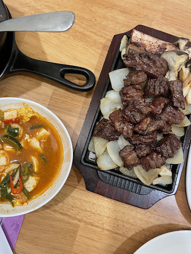 When the side dish came out I guess I did not really like them, and did not put a high expectation towards the food since I don't really like their banchan :( I ordered sundubu jjigae (90k) and marinated beef ribs (430k) for 2 person. When the main dish came out they're actually v good. The beef tasted so good just like the famous korean bbq in Jakarta! Haven't tried bbq as good as them in this small city. Sundubu jjigae also good, they use seafood as the other protein beside tofu and egg (usually korean restos in indonesia use beef). They're tasted light and warm, and full of squid and prawn (i expect to find clams but i guess it's good enough!). Even we only ordered 1 portion of rice (which came as a package with the jjigae) it's already fulfilling. Overall it's a good place if you're craving...