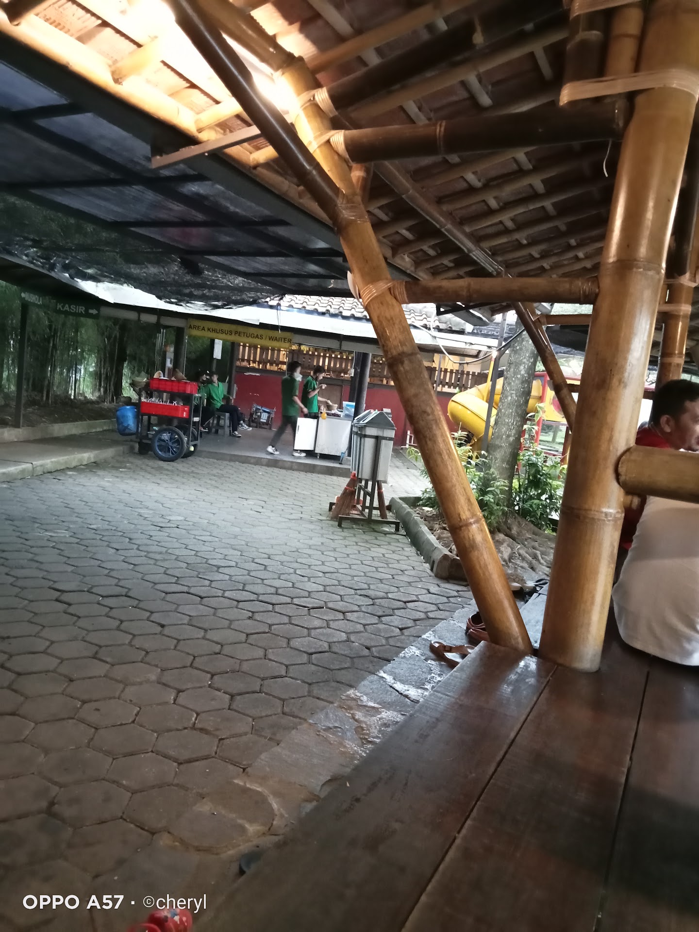 Best natural-scenery Indonesian restaurant in Cileungsi suburb. The price and food are fit each other. Have a big pond where you may found a relaxing-nature sounds of frogs singing and crickets at the same time. For a big numbers of family must reserved this spot for family reunion (Arisan). They also have 2 Playground for kids, excited enough to consume their time. Not to forget, they have little becak for rent. Si the conclusion..it is a must-visit and recommended family restaurant in Cileungsi. The place is inside harvest...