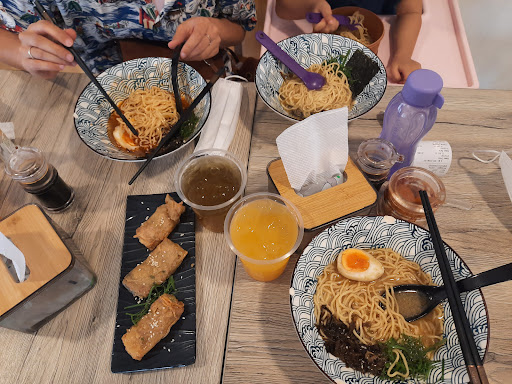 Ramen mala with extra beef : Rp. 31.000 ( tekstur mie nya oke, slice beefnya banyak dan gede2, tapi untuk rasanya so so lebih kaya kuah tomyum hehe ) Gyoza crispy : Rp. 15.000 isi 3 pcs, dagingnya lembut banget saking lembutnya kaya yang di kukus kelamaan, dan pas di goreng hampir kek gosong 🥲 Dimsum Nori : Rp. 15.000 isi 3 pcs, dimsumnya kecil2 rasanya biasa aja dan msh tetep lembek kaya kelamaan di kukus huhuhu Spicy wonton : Rp. 20.000 isi 3 pcs, bumbu spicy nya lebih kerasa manis dan kurang pedes tapi oke suka sama bumbu nya, tapi kenapa dimsumnya lembek semua kaya yg kelamaan di kukus huhuhu 🥲🥲