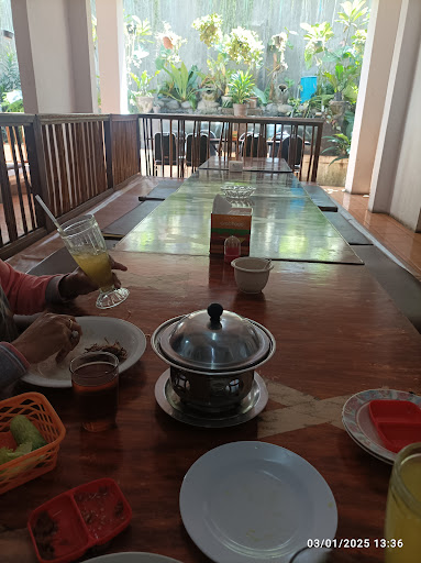 Tempat makan ada lesehan, bisa jg di meja makan, luas, bisa menampung banyak, bersih, nyaman, ada mushollanya, pelayanan gercep...rekomended neh buat bentar lg bukber...atau acara...