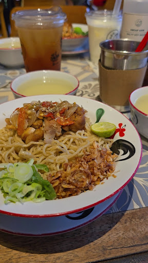 I've been there twice and ordered online once. If you're looking for spacious greenery to dine in, then this is the place for you. Ample parking space and indoor and outdoor dining area. An Indonesian style restaurant that serves local bakmi noodles and other basic dishes with a twist. Though their original is the oven baked chicken noodle (the oil was too much for me), I find the ones with other flavors more savory. I've had the opor ayam noodle with perkedel (savory brothy chicken with friekandel), which was good! I've also had the chicken noodle with cheese. At first taste, I enjoyed the cheesy flavor. But, as I got more into it, the taste got saltier. My husband always ordered the fried rice with kecombrang. I had a taste, and it was fragrant. I'd try it next time. A delightful surprise was the banana fritters. It's definitely worth a try. The banana was so tender, it melts in your mouth! Crispy on the outside, meltingly sweet inside. The drinks were okay. There are plenty of interesting flavors to choose from. The toilet itself is unique. There are sanitary pads available for women. Qtips, facial wash, and mouthwash were also in the toilet. The staff were kind and...