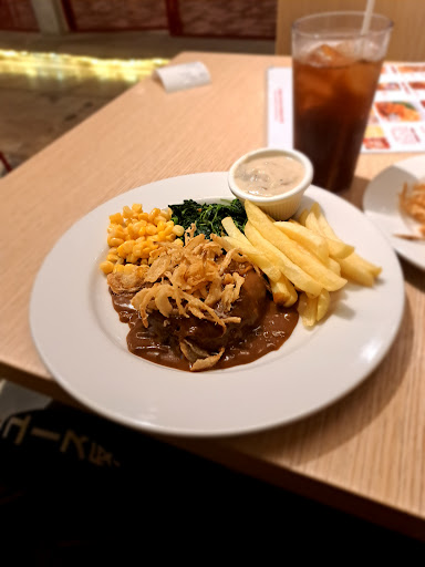 Burger steak was okay, very rich and flavoury. But i dont feel it serve hot, because on my table. Every menu i order little bit cold, i preffer using hotplate on my steak, so its hot when it served. Spinach too much garlic, i only feel the garlic. I ordered cheff reccomendation that day, medium rare. Also served not to hot. So its to chewy and hard to swallow. Again, i preffer hot plate.