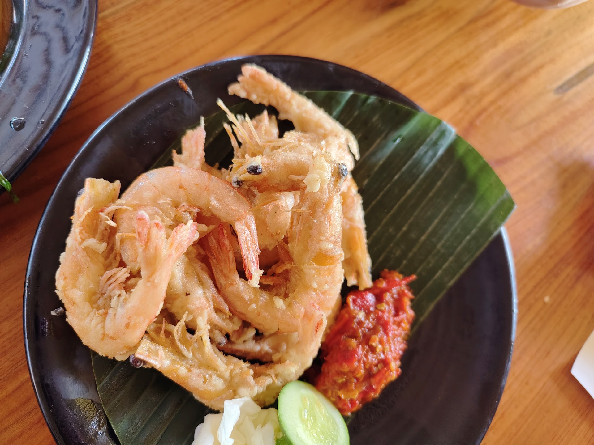 The food was great, the seafood is fresh, udang with telur asin sauce was delicious, but not perfect. Cumi little bit plain if u order cumi goreng tepung only. Gurame was great, perfect combination with the sauce. Very flavoury. Ayam goreng was okay, not the best but okay. Sayur asem okay. Drinks okay, not to much differ...