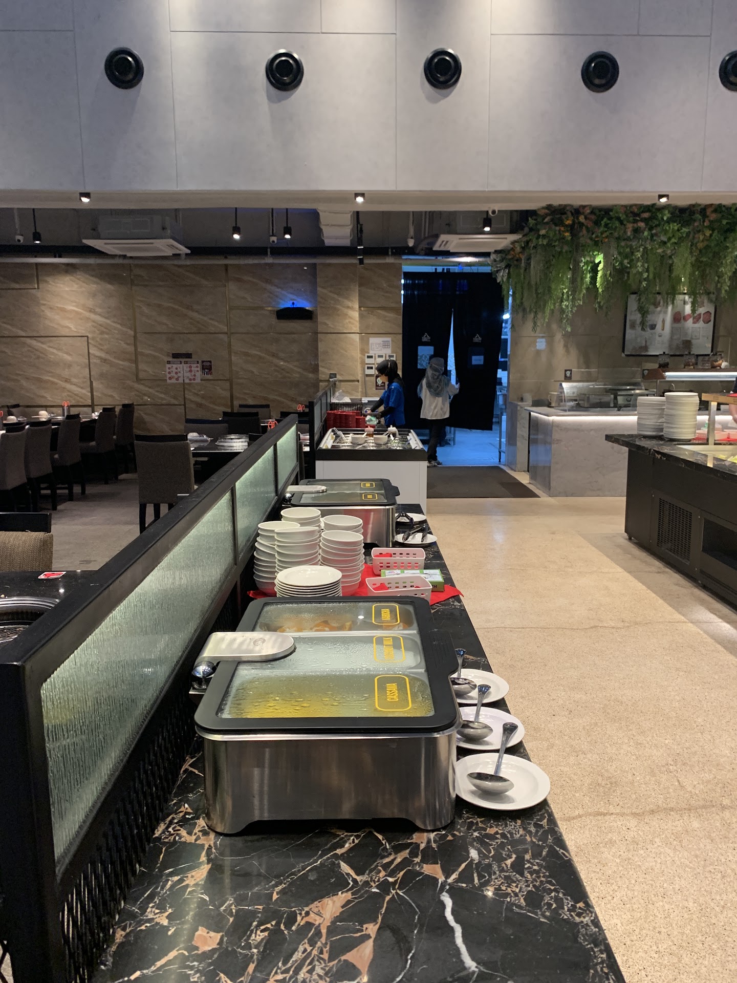 Vegetables were no longer crunchy, many of which are wilted. Cooked menu was far from warm. Saikoro cubes feels more like molded minced meet and tears apart when grilled. Very sticky grill made the experience worst. No idea why it wasn't coated in oil/fat to mitigate this issue.