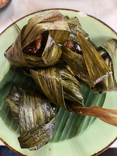 The Ayam Pandam is a piece of white meat chicken baked in pandam leaves. Very flavorful with a few sesame seeds as additional flavoring. Chicken was slightly overcooked but still very tasty. Served with a small (too small, frankly) side of slightly sweet chili sauce of about medium heat. Five pieces of chicken per order.