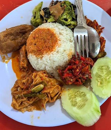 Β Β Β Read moredi sini bisa pesan makanan dr grab,kebetulan kita lewat lagi jam makan siang,sebenarnya saya bukan vege tapi teman saya karena ga kepikiran mau makan apa saya ikutan makan siang vege dgn teman2π.untuk pesanan ga lama langsung di hidangkan,rasa makanan buat yang suka vege pedas di sini oke,untuk kebersihan area cukup bersih sebenarnya mreka ga menyajikan makan di tempat karena kita ber 3 jadi di kasih meja.untuk harga masih bersahabat di kantong perporsi 20rb,untuk minuman tersedia jus markisa asli seharga 20rb,teh manis,nutri sari.yang jualan juga ramah koq guys kita di ksh sup vege dan keripik...