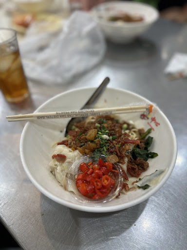 An old fashioned noodle restaurant, typical Chinese restaurant with the noodle counter at the front of the store, the seats are filled in a rectangular space cooled by fans, and at the back is the kitchen and beverage counter. The resto sells many kinds of noodle soup and dry/fried, mostly with chicken or pork. The restaurant allows customers to order food from other restaurants. They carry the soup base in plastic pails. I have concern about the food grade of the plastic container, and hygiene in overall. But friends said it is common and typical everywhere. So just be a local. And eat. And pray.
