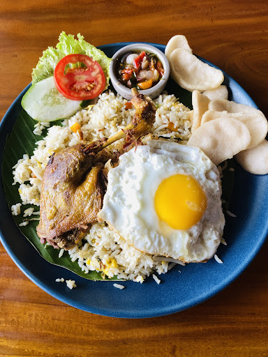 Β Β Β Read moreNasi goreng bebek bali: ini nasi gorengnya porsi jumbo, terdapat telur setengah matang, bebek bagian paha atas, kerupuk, dan sambal matah. Sebenarnya nasi gorengnya uda asin tapi jika mau tambah asin boleh makan dengan sambel matahnya, biar makin asin dan enak. Untuk bebek gorengnya uda pasti wajib pakai sambel matahnya (supaya enak dong), terlurnya pun uda asin dan kuningnya lumerrr. 8/10
