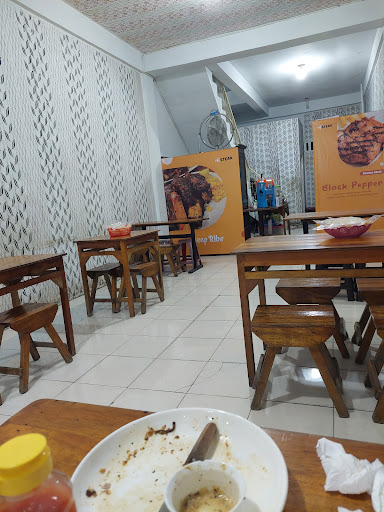 Read moreDaging steak di sini sangat enak, daging ayam yang empuk dengan bumbu yang meresap dan kematangan yang sempurna. Kalau sedang ramai, mungkin akan dibutuhkan waktu yang lebih lama untuk memasak steak. Selain steak ayam dan sapi ada juga dimsum disini. Harga steak sangat terjangkau IDR 29.000 untuk steak ayam dan porsinya yang terbilang cukup besar. Really...