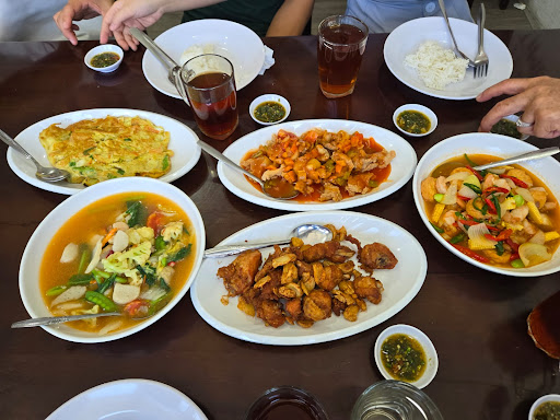 Read moreAbout one kilometer away from the Expressway Toll Gate of Tanjung Mulia in the South of Medan City, we can easily find the "Twenty-Seven Restaurant" which is a scene from "Full House" among the shophouses on the left. A few dozen meters before arriving, we could see from afar many private cars, both luxurious and ordinary, neatly lined up on the roadside in front of the restaurant. After parking the car and walking into the restaurant, we chose a long square table outdoors under a canopy and sat down. We ordered two dishes and a soup, plus a plate of seafood petai fried rice and a plate of white rice. After a while, the meal was served, which was the two dishes and one soup ordered by my wife, plus fried rice and white rice. We both looked at the amount of food that could feed four to five people, and smiled knowingly at the same time (asking ourselves: Can we finish it? 🤭🤭), and then began to enjoy this delicious lunch together. Yes, to be honest, this lunch was really delicious! ! The stingray with bean paste and chili and stir-fried bean sprouts with chili plus salted fish aroused the excitement on my taste buds. The seafood petai fried rice and seaweed soup also highlighted our ugly appearance when we swallowed them in big mouthfuls 😁🤭. After a [wind sweeping fallen leaves] style lunch (in Chinese provebs), we finished everything quickly in a moment 😄😄😄! My opinion is , "The restaurant is packed with customers, the food is delicious and the price is reasonable (depends on sum of persons in group, big portion suitable for group minimum 4-5 persons)". This restaurant will definitely have a bright future in their business! For those who have never tried it, why not give it a...