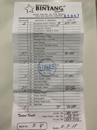 Read moreits consider one of the oldest local resto, serving local padang mixed rice. There are a few place named like this Bintang. but it kinda stated they didnt have any brances. Definetly a sign the food is soo good till others copy the brand. Here is famous for the steam fish, but i dont really know the english name, they call it "bawal" locally. Fried chicken are ok also. the waiter basically gonna put every available dishes on your table whole serving you, can just pick what you wanna try, and stick with that, they charge you full portion even if you just taste it.( its normal isnt it? ) but definetly worth visiting to try the local...