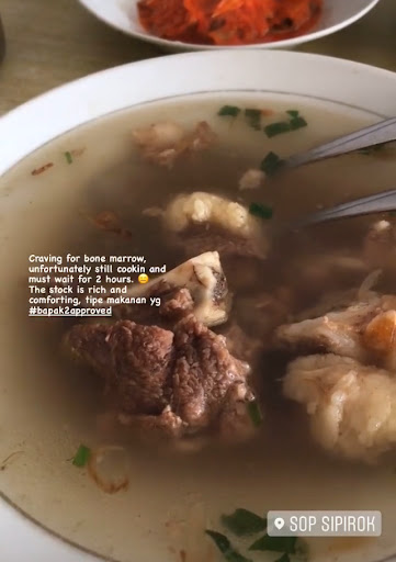 Read moreEnaaakkk, clear soup, tender meat; order sop iga. But, came around 10:15, the restaurant listed open on 10am but the bone marrow is not available (ready at 11:30) the sop iga is available at 11am. Too bad, supposedly they put opening time 11am instead of 10am if things arent ready yet. So visitor that came from a far not feel dissapointed. Sambal daging bakar was ok, not extravagant like other people said here, better manage ur...