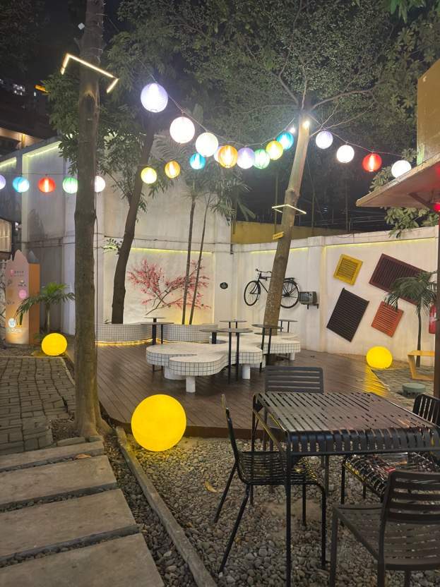 this place is very good for people who like to take pictures, because they have various models of out door seating and a layout of trees that make our photos even more beautiful. Also they have live music and some claw machine to hear and play.
