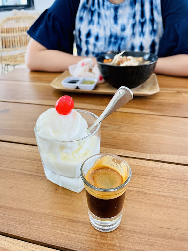Visited this cafe for lunch. We were greeted by the friendly staff, and seated indoor due to the temperature and nice ambience. We ordered Brulee (spaghetti bolognese topped with generous amount of melted cheese), Mie Sop, Creamy Truffle Pizza, Botanica (lemongrass and mint leaves served in a pineapple), and Affogato. We loved the Brulee, Botanica, and Affogato, but the Mie Sop was only OK. We were quite disappointed with the Creamy Truffle Pizza as it was topped with champignon instead of truffle that I had to ask the staff if they served the right dish. On the positive side, we loved the Canggu vibes of the interior, and enjoyed...