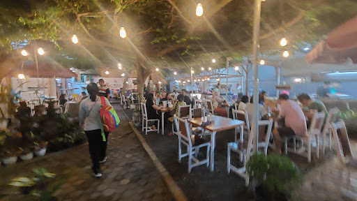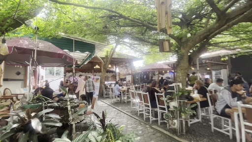 Untuk suasananya ceria di sini. Saya suka dengan konsepnya. Bukan ruko khusus. Tapi seperti memanfaatkan halaman rumah yang luas dan memakai semua ruang yang ada, jadi bermanfaat. Suasananya dingin karena ada pohon yang menaungi, kemudian ada gazebo juga.