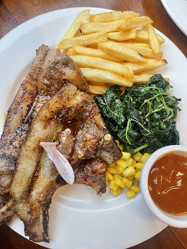 Then came the black pepper sauce. Don't let the seemingly simple title fool you. This was a symphony of peppery punch, with each fiery kiss leaving a tingle on my tongue and a warmth in my soul. It wasn't just heat, though – there was a complex depth, a whisper of sweetness that played beautifully with the rich beefiness of the steak. I found myself dipping everything in sight in this glorious concoction, from fries to veggies, even sneaking a spoonful straight from the dish (no shame!).