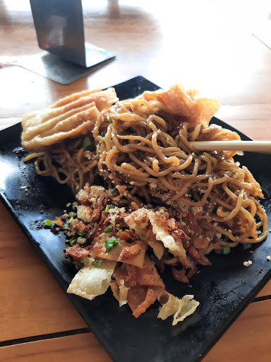 This restaurant has no doors, it's wide open onto a busy road. Not only that, but they also have loud music. So, it's hard to hear the cashier as well as your fellow diners when talking. Given that it's noisy enough because of the road, I wish they could at least not play any music, in order not to make things even worse. They only have chopsticks. When I asked for a fork, the waiter said "Tidak ada"... Bad news for me, who always struggles with chopsticks. They also don't have tissue on the tables. The only tissue available are paper towels that you can stand up and fetch from a dispenser on one of the poles. These are paper towels like in a bathroom. In this restaurant there is a smoking area. But it's not closed off by a wall and door. And even if you sit in the non-smoking area, you get their smoke. Awful. In the hallway leading to the toilet they have carpets. And I tripped on one of the carpets. It turned out there was water under the carpet. The toilet tank also didn't have a lid, it took me some time to figure out where the button to press was. In front of the restaurant there is a sign asking people to wash hands "here", but...