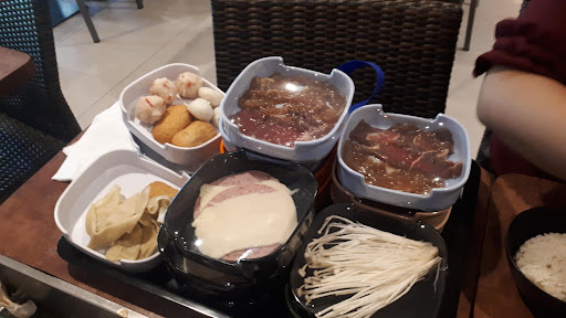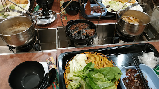 I've been to numerous suki restaurants before like let's say XO Suki...well, this is the first time I've been in a suki restaurant where you CAN'T control the fire on your stoves as they don't have knobs under them to control the fire, thus waiting your stock to boil over takes forever. You'll be given pots for the soup and a stonegrill on your table where you can cook your own meat. Don't expect the pots are large like in other places; they're so small. Even the stonegrill too. And since there are no knobs to shut the fire off from the stove you'll need to call the waiter/es and they will do that. Pretty awkward.
