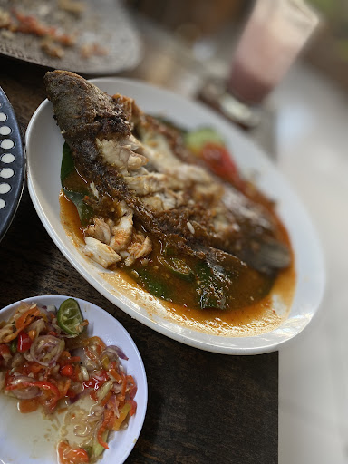 Ikan sama sekali tidak ada rasa nya . Bumbu siram dari atas. Ikan nya belum matang full.