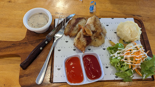 Read moreThe restaurant is located in the middle of the mall, and for this big of a portion and affordable prices, it's not surprising that it's always crowded, especially on weekends. I ordered Dory Parmigiana with Mashed Potatoes because I was kind of bored with anything chicken, and it made me decide to add Dory as my new favorite food. It was so delicious! The fish was cheesy and soft, but it's not the type of soft texture that's going to fall off and leave scattered leftovers on the plate, which is the texture I like (because I can taste the whole piece). Mashed potatoes were creamy, soft, and milky. I think it was dominated by milk flavor, so if you prefer buttery mashed potatoes, you might try picking potato chips as the side dish. Peach tea was so fresh; it came with a lot of peach fruit slices, but since they didn't give me a fork, I can't eat them even though I want to. Overall, it's a good place to hang out with friends and family, just make sure to come early so you don't have to be on the waiting list. The waitresses said they were going to call you by phone when there is a seat available, but I suggest you just check the place and ask them regularly if there is a seat available instead of waiting...