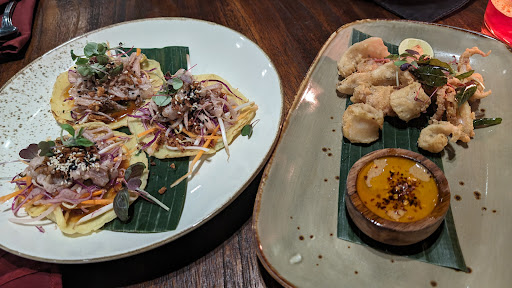 Read moreWe chose this restaurant at the last minute and are so glad we did so! The pictures of all menu items were nicely done, and we were already excited about how great the food would be. Each dish was delicious and tasteful, and beautifully presented just as in the menu photos. The staff were friendly and helpful. The ambiance of the restaurant was cozy and inviting. The price was super reasonable. I really loved my grilled barramundi. It was nicely cooked with skin crispy. It was mounted on 3 different sauces, allowing me to enjoy the fish in various ways. Oh, the pulled pork pancake! I wish I knew how to cook it at home. It was an amazing appetizer! The poached peach dessert was just about right, really going well with the ice cream.