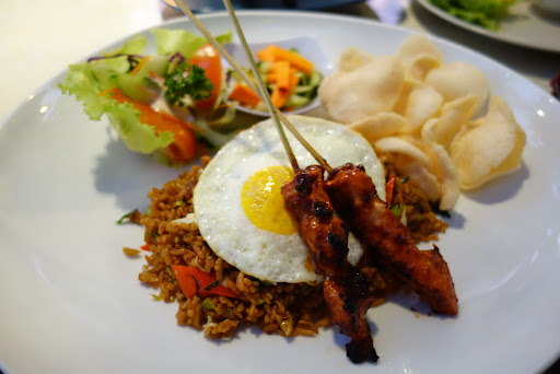 My wife and I were about to blow off Jenpun as a stereotypical touristy restaurant until we took a closer look at the menu. In addition to the expected Western style steaks, seafood, and pasta dishes, some unique Indonesian items were present that we hadn’t seen on other local menus and that enticed us. We ordered the rendang domba (lamb shank curry) and nasi goreng kebuli (goat fried rice). Both dishes were excellent. The lamb shank curry offered a large portion of meat that fell easily off the bone and arrived coated in a rich, aromatic curry sauce. The slightly spicy fried rice had the ideal texture, tender goat meat, and was smartly topped with lamb sate skewers and a jammy fried egg. We would gladly order both dishes again.