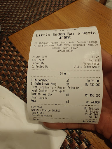 Read moreWe had lunch at Little Eeden Sanur twice. The first one was when we were waiting our boat to Nusa Penida, the second one after we got back from Nusa Penida. They have excellent service, they gave us the fresh towels and welcome drinks. It's our first time getting this service in Bali. Very considerate!