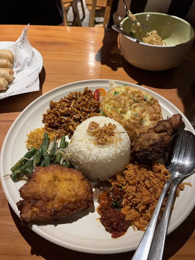 This place is a hidden gem and one of the best places we ate at in Sanur! We came here on our last night with our 2 picky young kids. We ordered the nasi campur, fried rice, 2 instant noodles for our kids, spring rolls, 1 water, 1 Bintang, 1 mango juice and 1 coconut water. Every dish was amazing, everyone demolished their meals and it came to less than 240k. The nasi campur was one of the best I had in Sanur, cooked fresh and served warm and was only 30k. Also there’s outdoor seating or indoor which is air conditioned. Highly...