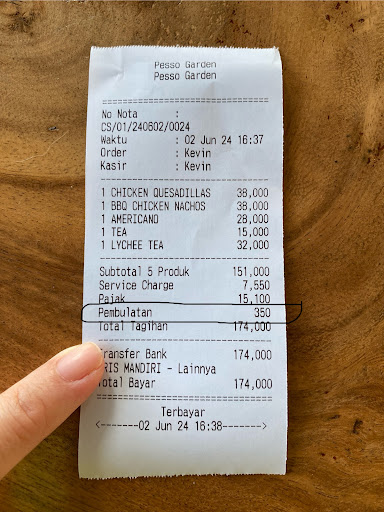 However, I'm giving an overall 2/5 because of rounding up payment without asking. It's 2025, people are paying with QRIS/debit/credit where every rupiah can be clearly defined with no need of return.