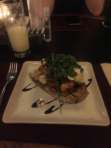 Food: The spiced cashews were underwhelming. They could have gone a little easier on the spices and the flavourings especially the ginger and sugar. The bruschetta, zucchini fritters and monkfish were excellent. The dessert, a chocolate cake with a raspberry coulis was almost excellent. The chocolate cake was excellent but the raspberry coulis was so sour that they might as well have had a lime compote instead.
